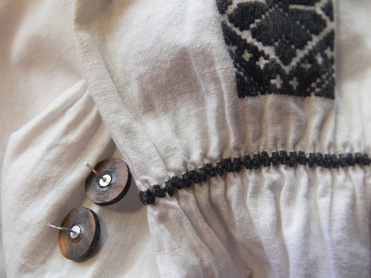 Cercei lucrați manual din lemn de prun, finisaj shellac, tortițe de argint